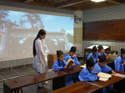 在此次观摩会上,研究所首席研究员张光义教授做了“学校推进传统文化体验教育的立足点和着力点”主题讲座,山东教育科学研究院传统文化教育中心主任耿成义也做了“体验与融入,传统文化体验教育漫谈”的精彩讲座。本次会议的最大亮点就是全国首套数字国学体验教室在东凯实验学校正式启用,体验馆凭借多种数字多媒体设备,实施中控集成系统,实现一键开馆一键闭馆,把国学内容开发为软件课程,融入其中,打造了一种沉浸式、互动式穿越式的全新体验方式。