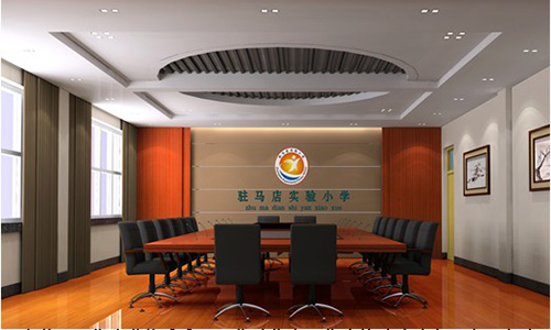 作为学校成员之间传递信息、传达精神的地方,会议室的设计应该突出空间,宽敞明亮、活泼大方,同时又不失庄重。会议室的光线应较为明亮,除了在使用投影幕的时候需要较暗的光线环境外,在其它时候,明亮的光线反而可以使与会人员的心态放松。要给会议室留有一定的活动空间,合适的空间可以使与会人员的心理松懈,利于信息的理解、接受。