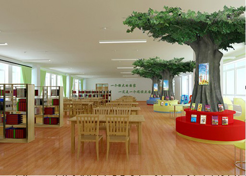 图书馆是学校文化最重要的组成部分,是师生查阅资料、休闲放松的场所。在环境文化营造时应突出舒适、休闲的氛围,提高学生的兴趣与注意力。